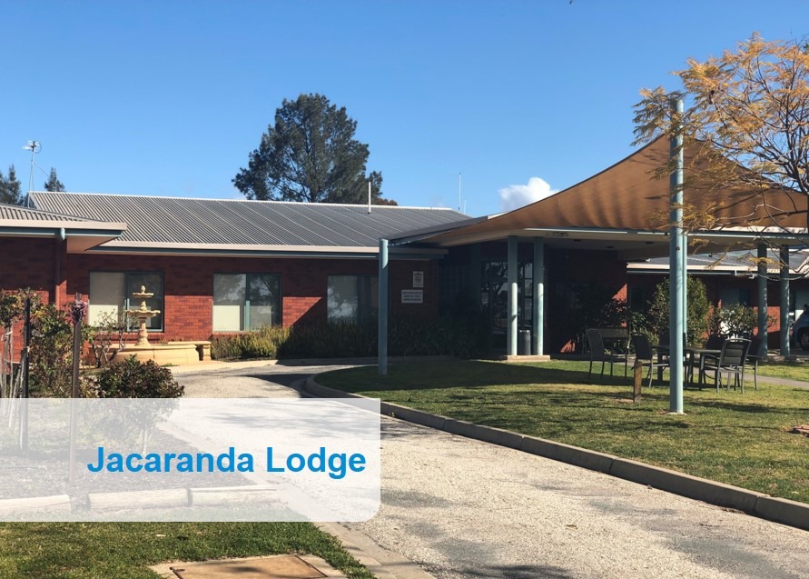 Swan Hill District Health has two residential aged care facilities, Logan Lodge (45 beds) and Jacaranda Lodge (30 beds) .